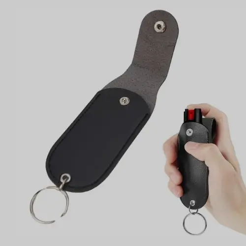 A compact personal alarm that emits a loud sound to deter attackers and attract attention.